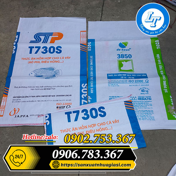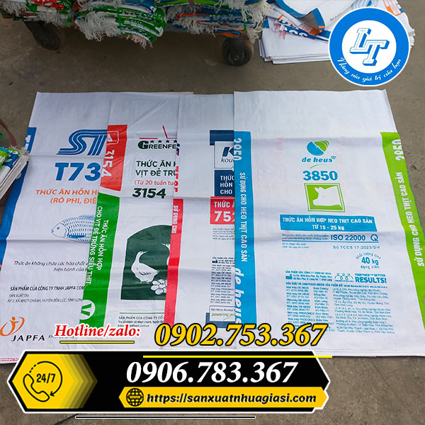 Loại bao: bao có in ấn logo cám cò, thức ăn chăn nuôi với đủ màu sắc bắt mắt. Bề mặt bao có tráng nilon hoặc không