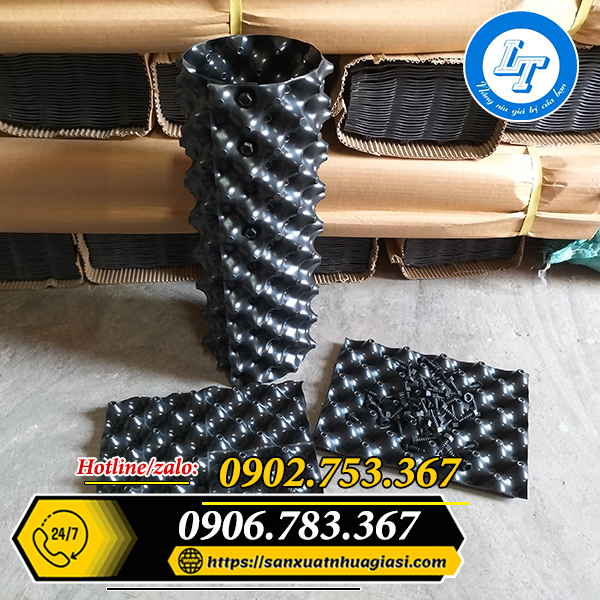 Thiết kế: là tấm bầu dài, bề mặt có các lỗ thoát nước hình nón. Đi kèm với bầu sẽ có ốc nhựa, đế bầu