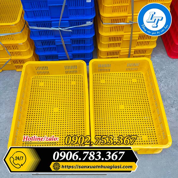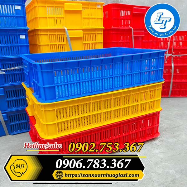 Màu sắc sóng nhựa đa dạng như xanh dương, xanh lá, đỏ, vàng, đen,… với độ bền màu cao. Thiết kế dạng hình hộp chữ nhật rỗng, kết cấu dạng nan hở được phân bố đều ở các mặt, đảm bảo không khí lưu thông, hạn chế đọng nước. Thích hợp để đóng gói các hàng hóa nông sản, rau củ quả không bị ẩm mốc, hư hỏng