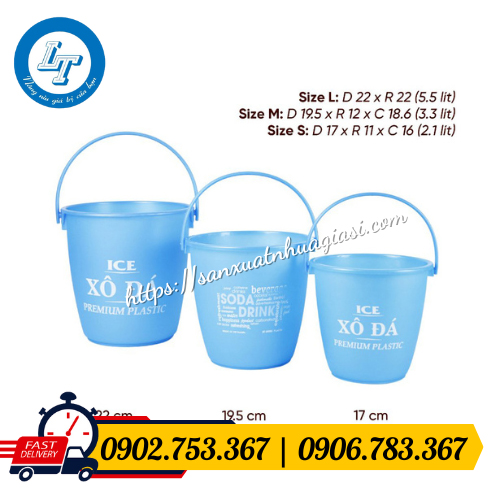Kích thước: Xô nhựa có kích thước đa dạng từ lớn đến to để có đủ dung tích chưa lượng nước đá cần thiết cho mọi buổi tiệc vui. Với 3 kích thước cơ bản: