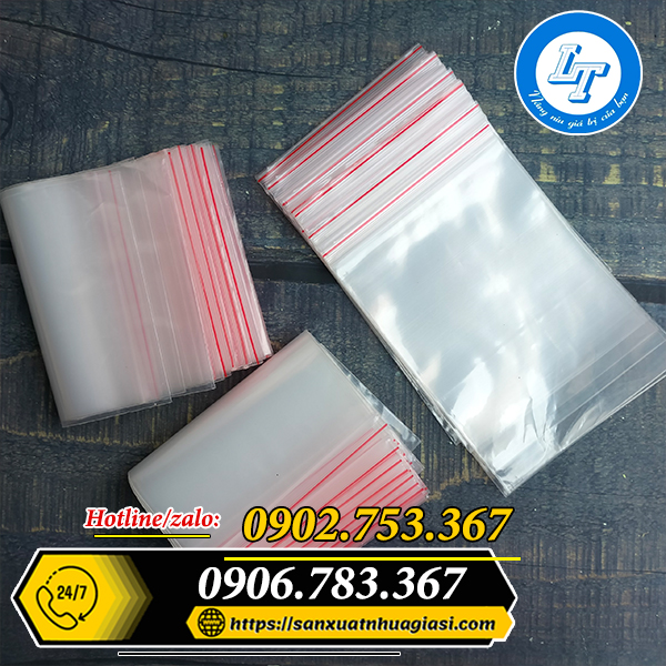 Túi zip chỉ đỏ có cấu tạo hình chữ nhật được ép nhiệt 2 bên biên hông và đáy, phần miệng túi sẽ có khóa zip vuốt miệng để đóng mở túi vô cùng tiện lợi. Đường khóa zip này màu đỏ nổi bật trên nền túi trong suốt nên sản phẩm có tên gọi là túi zip chỉ đỏ.