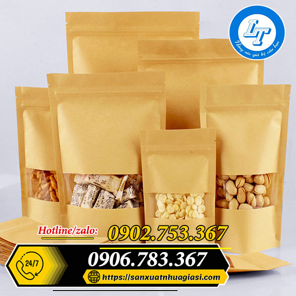 Mẫu mã túi: túi zip giấy đáy đứng, túi zip giấy xếp hông, túi zip giấy có cửa sổ (tràn viền và cửa sổ nhỏ),….