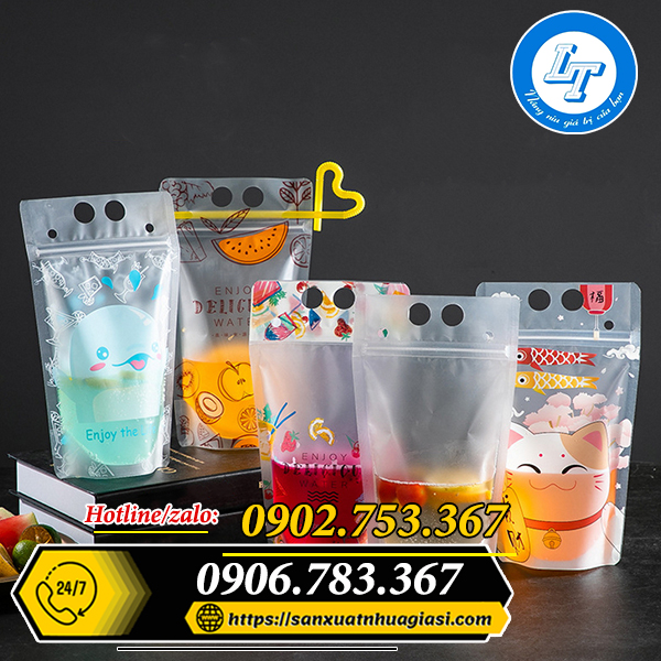 Mẫu mã túi khi in ấn trên bề mặt túi vô cùng đẹp, có thể in ấn theo thiết kế riêng của khách hàng. Vừa tạo điểm nhấn khi đóng gói thức uống, vừa quảng báo thương hiệu cho doanh nghiệp.